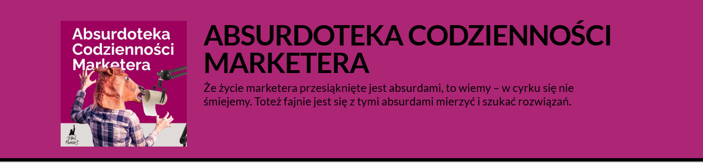 Osobom, które nie mogą pojawić się osobiście, polecam Absurdotekę Codzienności Marketera. To podcast oraz transmisje na żywo w serwisie LinkedIn. Twórcy identyfikują tam nieefektywne praktyki i – co najistotniejsze – proponują konkretne rozwiązania. Wśród gości pojawiają się tacy eksperci jak Dagmara Pakulska, Łukasz Kosuniak, Anna Ledwoń-Blacha, Igor Bielobradek.